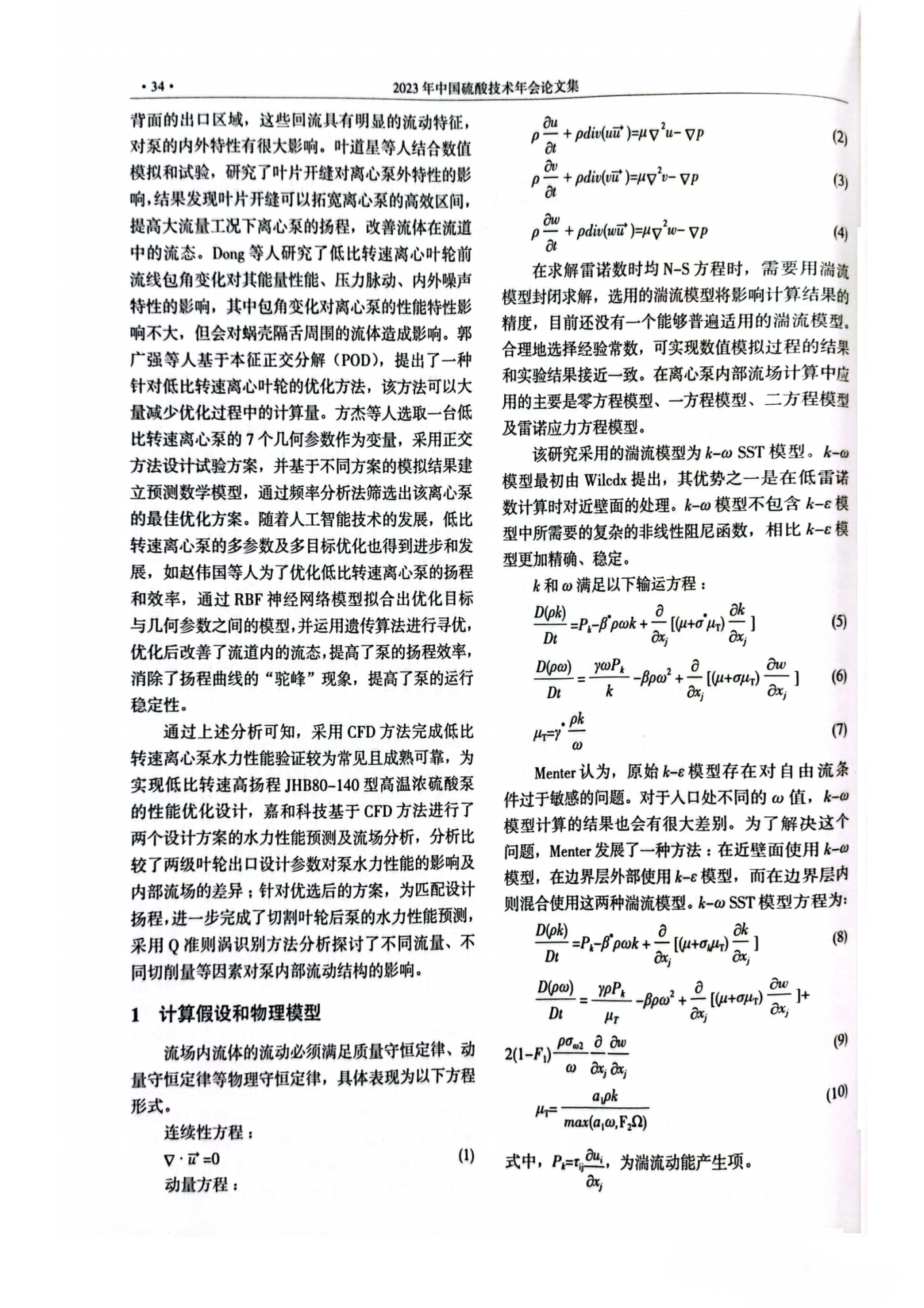 基于CFD的低比转速高温浓硫酸液下泵水力性能预测及流场分析