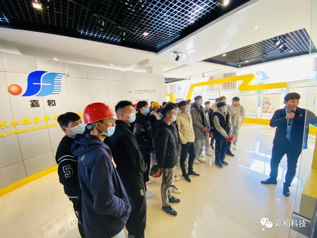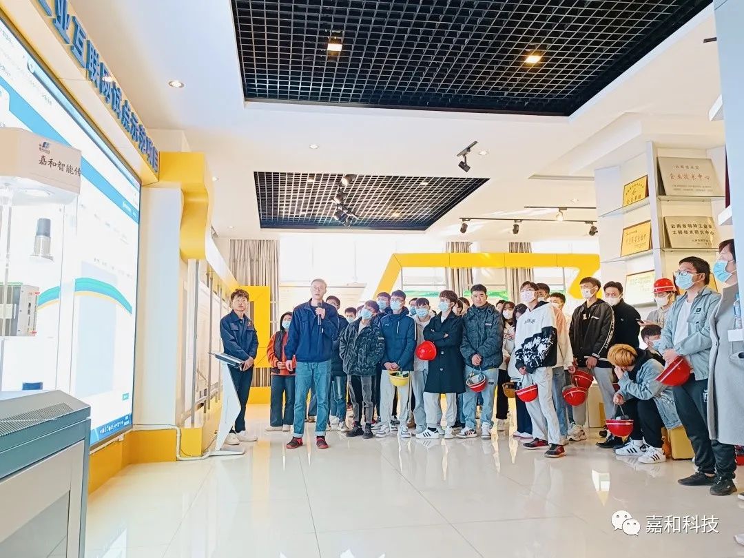 2021年12月1日“昆明冶金高等专科学校电器与机械学院”到嘉和科技参观实习(120人左右),通过高校与企业的亲密合作,双向赋能,把校企协同、产教融合落到实处,将高校人才培养和协同育人落到根本,真正的帮助大学生提升就业能力,为他们实现更高质量的就业保驾护航。