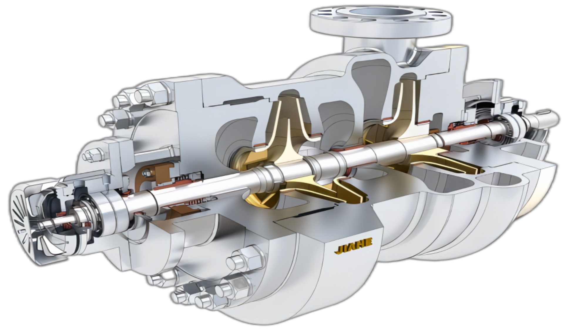 JHBB/JHBD 系列为两级、径向剖分两端支承离心泵。符合 API610-11th 标准。JHBB 为首级单吸,JHBD 为 首级双吸。进出口法兰尺寸满足 ANSI 或 ISO 标准。密封腔的设计符合 ISO21049/API682 密封标准 , 适合安装 集装式单封、有压串封或无压串封。冲洗、冷却、加热、急冷和缓冲液管路的连接符合 API 方案。