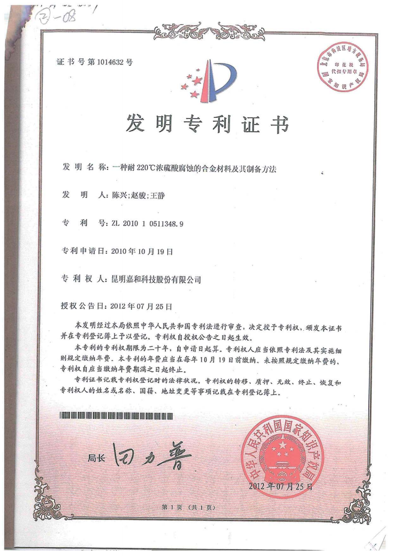 Alloy Material Resistant To Corrosion Of 220°C Concentrated Sulfuric Acid And Preparation Method There Of