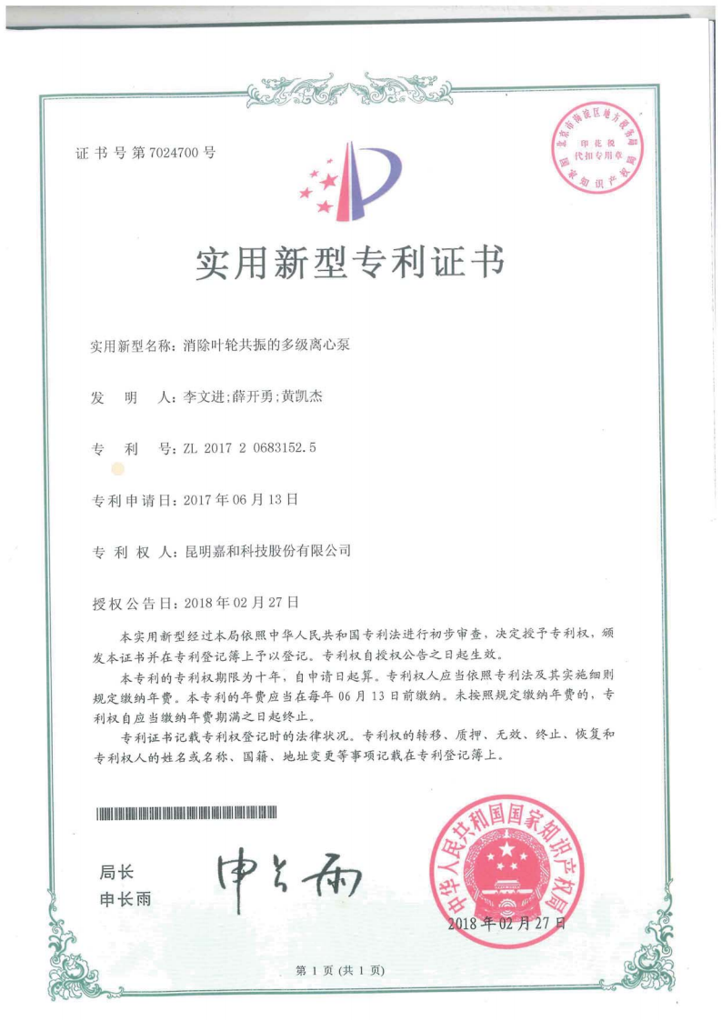 Multistage Centrifugal Pump Eliminating Impeller Resonance