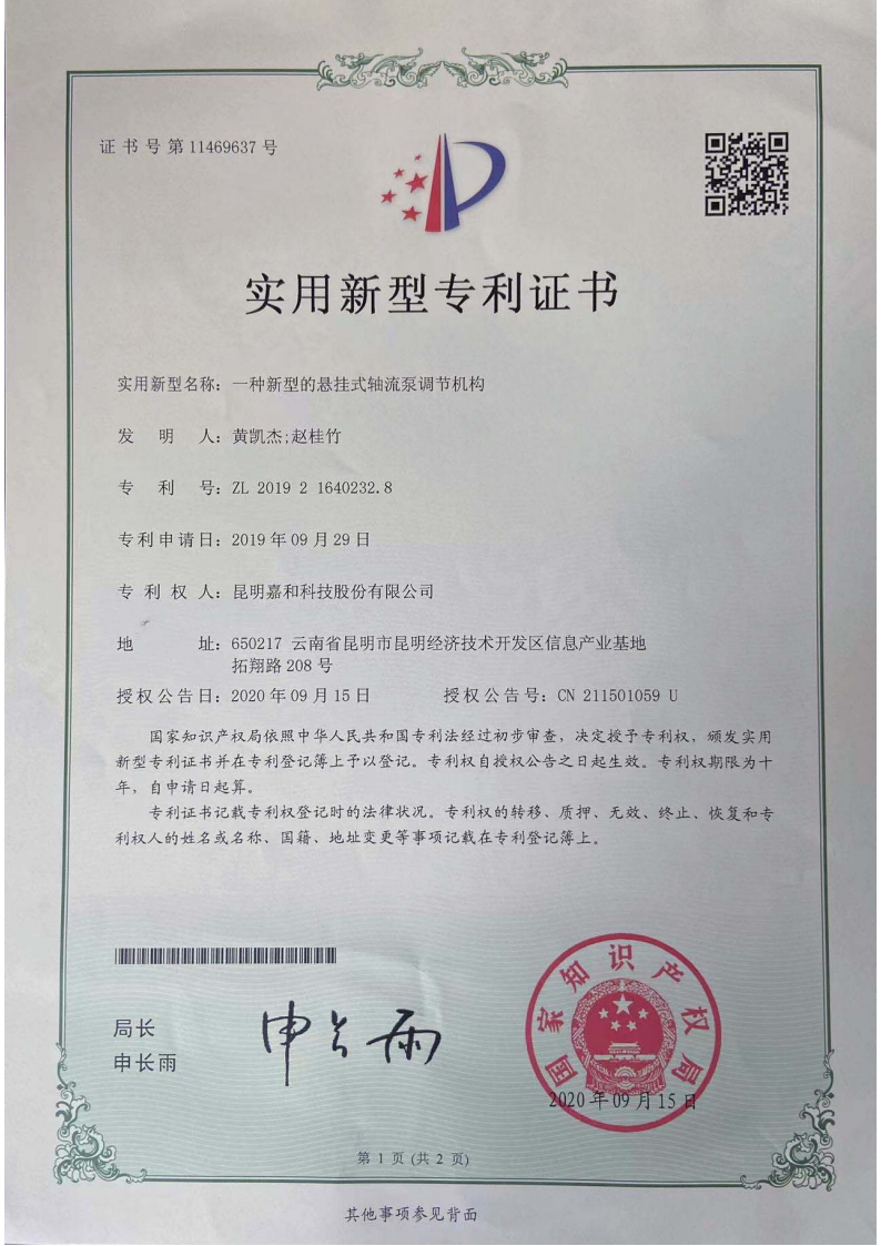 A New Type of Regulating Mechanism of Suspended Axial Flow Pump