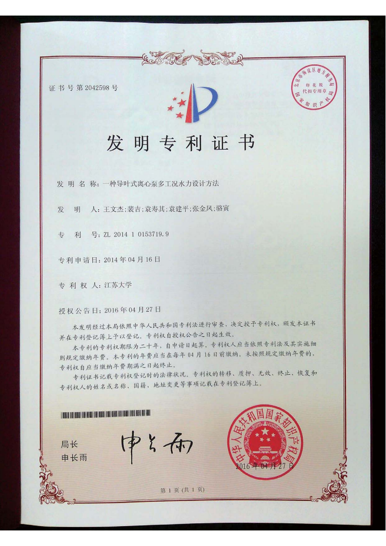A Guide Vane Centrifugal Pump Hydraulic Design Method For Multiple Working Conditions